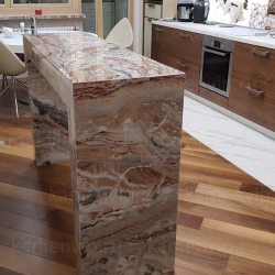 Оникс — отделывают барные стойки, камины, стены, внутри которых устанавливают подсветки. В результате, достигается сногсшибательный эффект.